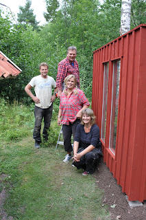Lena och jag som tog över med målningen, tackar för det eftersom regnet öste ner när vi tog fram färgen och rödfärgade alltsammans.